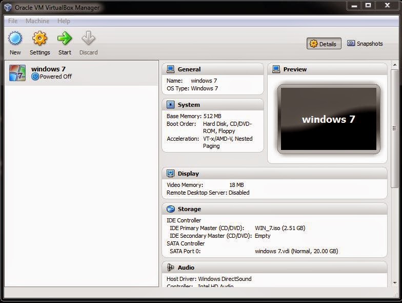 tentang nama,tipe os,base memori, bott hardisk dari mesin virtual yang di buat